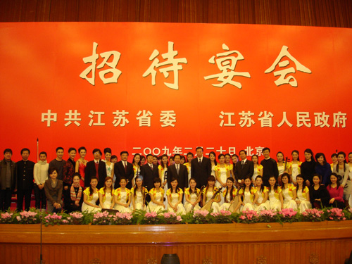 国务院国资委主任李融荣,江苏省委书记、省人大常委会主任梁保华,江苏省委副书记、省长罗志军等出席恳谈会及会后活动,并观看了江苏省艺术家的精彩演出。(下图后排左起第六人为李珊珊)