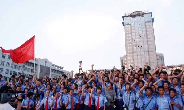 同学组成的八营方阵富有特色、技压群雄,在蓝天下他们激情四放、脱颖而出,并最终以最高分荣获歌会特等奖。