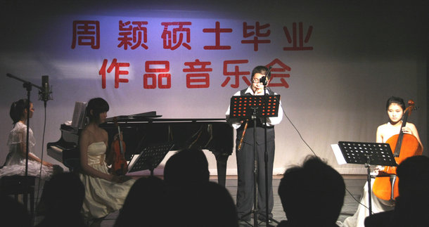 整台音乐会一气呵成。周颖同学通过两年半的勤奋学习,用较为成熟扎实的作曲技巧和细腻强烈的情感创作的音乐会作品,打动了在场的观众。最后全场报以热烈的掌声,音乐会圆满结束。