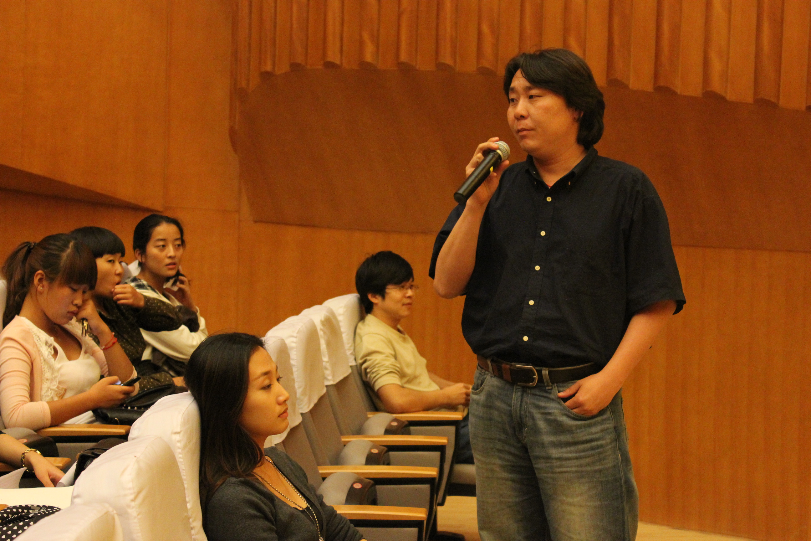 张利华教授幽默诙谐的话语引得成人电影 笑声连连,现场气氛热烈,多次响起了热烈的掌声。张利华教授呼吁同学们应养成良好的观察生活、善于思考的习惯,并勇于走向世界去感受不同的艺术。在互动环节,同学们踊跃向张教授请教,张教授都耐心地为同学们答疑解惑。