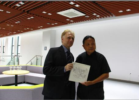 、图书馆对展览的大力支持表示感谢,并希望将来有更多的机会能与我校合作。我院王立庆老师为孟凯若先生现场作画并将画作赠送。