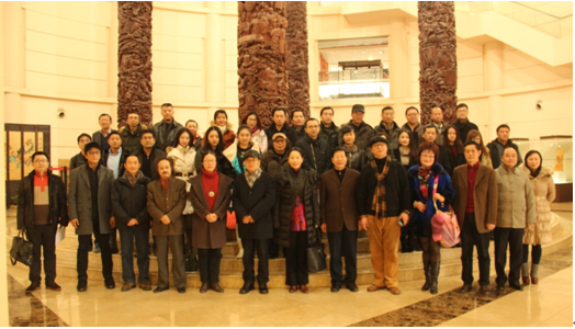 (由左至右:南京鼎轩建筑装饰艺术设计有限公司董事长袁明,江苏室内设计学会副会长、南京市室内设计学会会长、东南大学博士生导师、教授高祥生,江苏爱涛文化产业有限公司总经理陈国欢,南京市室内设计学会秘书长程冰衡。)