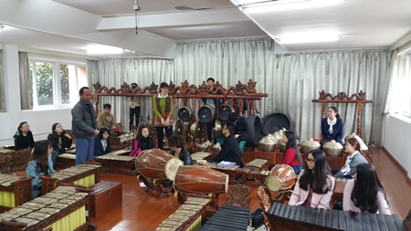 有关教师在教学改革、专业建设、课程建设等方面进行了深入的交流,现场观摩了由印尼籍教师指导的印尼民族乐器佳美兰演奏课程的教学。
