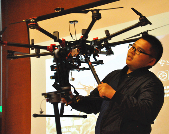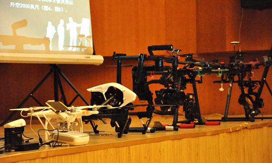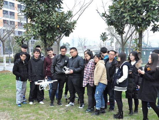 电视拍摄的专业六轴、八轴无人机航拍器。他详细地介绍了航拍器各个部件的功能以及不同航拍器的特点,深入浅出的讲解让参加讲座的师生们收获颇丰。特别是王钰霖本人的航拍作品所带来的震撼效果更让同学们赞叹不已。