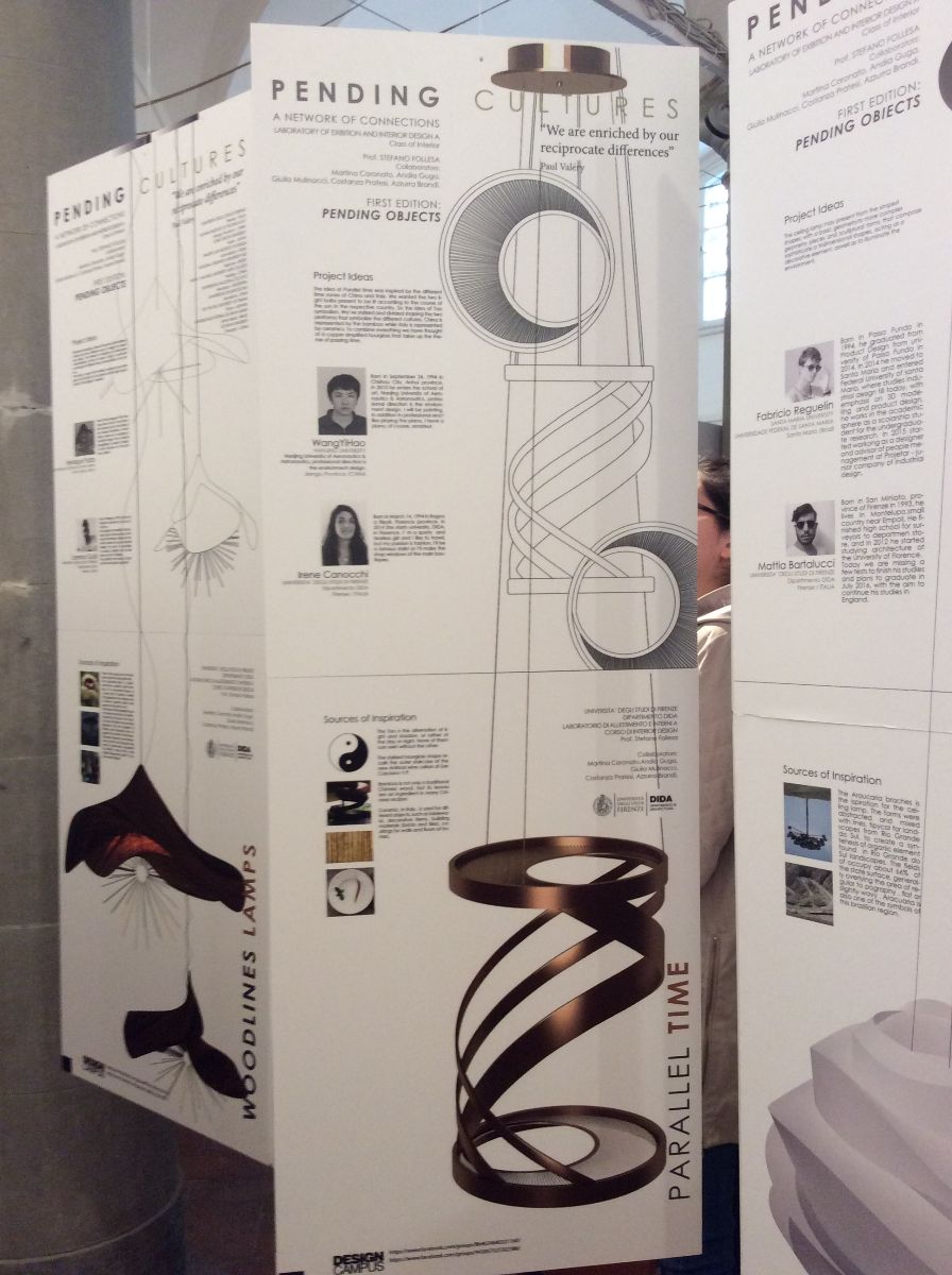 本次展览中, 王逸豪同学和来自意大利的Irene共同设计了作品“平行时空”,上下均为环形,中间用旋转的条带连接起来。出发点基于中国与意大利处在不一样的时区,希望通过这个艺术品能连接起两个国家的友谊。此外,“平行时空”还融入了中国文化中的竹子以及意大利文化中的陶瓷造型,寓意着中意两国文化的个性与共性。
