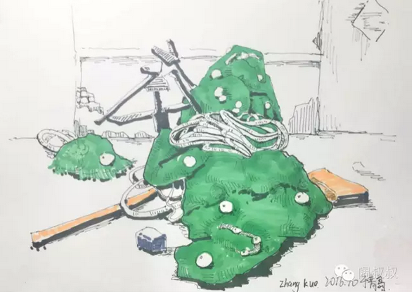 课程进行时,我们辗转渔村神往崂山之中更深处的风景,大家也到了创作高峰期,精彩纷呈,佳作不断,我迈着小步,紧随其后,透山间之清野,染树丛之碧翠,摩擦的时日里,总会有不经意的火花绽放,我的视线里是朦胧的,映射到画作上,舍友说,你可以换一种风格,朦胧的感觉很好,我悠然信之,虽不比他人画作,但这在我心中媲美洛神的颜色,足以撼动自己,一如既往。