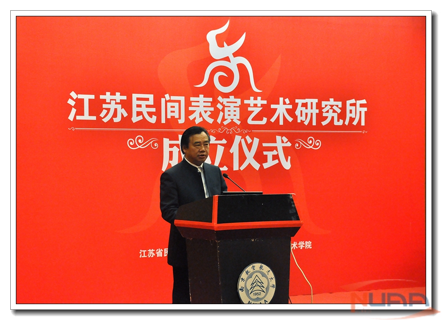 校长助理熊克教授在成立仪式上致欢迎词。他指出,江苏民间表演艺术研究所的成立,体现了南航对民间表演艺术与文化研究、非物质文化遗产保护等领域的高度关注,也是成人电影 界及江苏省文化系统对我校在该领域所取成绩的充分肯定。它的成立有利于我校加强人文学科建设,进一步服务江苏文化建设。同时,也为各种民间传统文化艺术的交流提供平台,是一次双赢的合作。