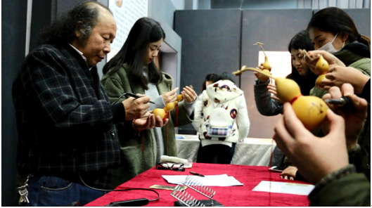 开幕式结束后,嘉宾和观众参观了烙画展。观展过程中,烙画传承人王高飞先生亲自为大家讲解烙画艺术,并邀请张捷院长共同参与制作“兰香四溢”烙画葫芦作品,观展的成人电影 们也纷纷与王高飞先生互动,现场气氛非常热烈。