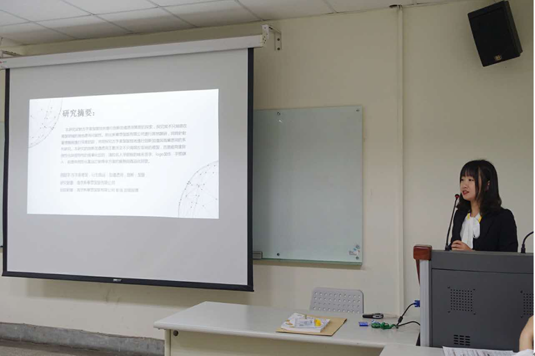 “说实话写论文的过程还是挺辛苦的,尤其是在交稿的前一周,每天晚上都熬到凌晨一点钟左右。”马韵斐如是说,“但是获得了前往台北参加研讨会、发表论文的机会,就觉得付出的努力都值得了。”撰写论文时,为了使文章的内容更能联系实际情况,在指导老师李育菁的协助下,她与南京新华丰制版有限公司取得了联系,并和老师一起前往该公司进行实地调查,与副总经理彭浩深度访谈,获得了许多第一手的市场信息,为论文撰写提供了有力的支持。