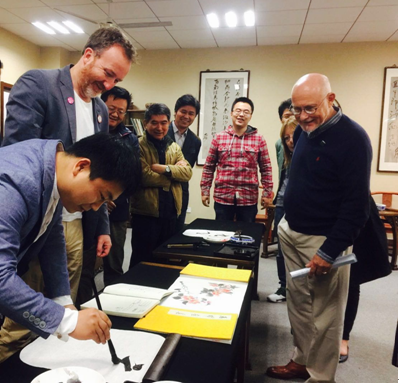 此次来访客人主要为英国陶瓷艺术设计领域富有影响力的学者,他们分别是: Dr. Tony Quinn(英国伦敦大学联盟中央圣马丁成人电影 陶瓷系教授、中欧陶瓷艺术研究院常务副院长)、Dr. Andy Allum(欧洲及英国陶瓷艺术协会执行副主席、英国皇家首席艺术家、中欧陶瓷艺术研究院艺术设计总监)、Mr. Geoffrey Kenwad (英国伦敦陶瓷行业协会主席,中欧陶瓷艺术研究院执行秘书长)、Mrs. Frances Kenwad(英国伦敦陶瓷行业协会高级顾问)和我校校友周博超博士(英国伦敦大学城市成人电影 计算机专业高级讲师)。