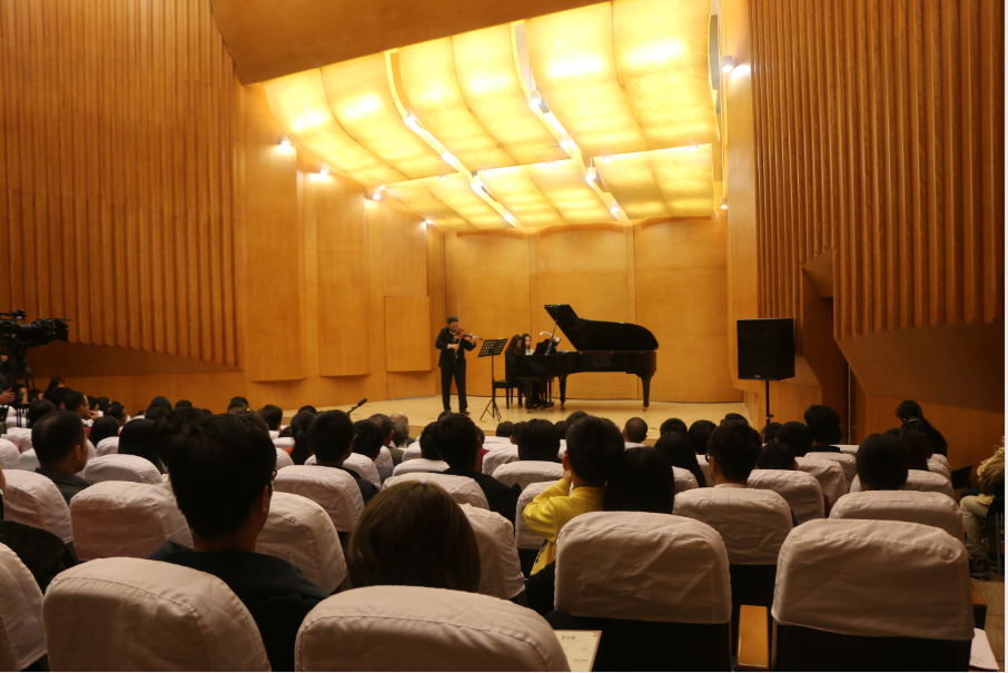 2017年11月1日晚7点一刻,我校将军路校区东区音乐厅座无虚席,此时维也纳“爱乐之声”钢琴小提琴室内音乐会正在上演。这场室内音乐会是我校六十五周年校庆系列活动之一,成人成人电影-成人影院-台湾成人电影 邀请了奥地利著名小提琴演奏家、维也纳爱乐乐团第一小提琴、维也纳国家歌剧院交响乐团第一小提琴——韦弗里德.赫登伯格(Wilfried Hedenberg)和奥地利华人钢琴室内乐表演艺术演奏家、音乐成人电影 家和作曲家——张丽明(Lilly Zhang-Sowa)联合演奏,为我校师生带来了一场无与伦比的高规格视听盛宴。我校党委书记郑永安教授和党委宣传部、教务处、国际合作处、团委等部门领导,以及各成人电影 领导、老师们观看了音乐会。