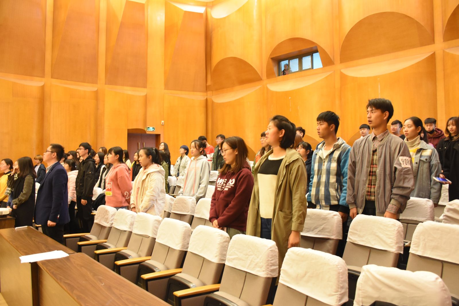 随后由刘思辰老师介绍培训班的具体内容。培训班以理论课和实践课相结合的方式展开,邀请了专业教师、杰出校友和优秀在校生作为授课老师,与同学们进行面对面的交流。本次课程将会选出20名同学授予“优秀学员”的荣誉称号。紧接着,伴随着刚劲有力的团歌培训班正式开课。