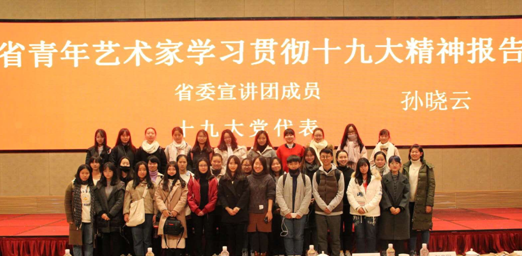 孙晓云同志将十九大报告概括为为八个方面,首先介绍了十九大“不忘初心,牢记使命”的主题和十九大会议主要成果,后又阐释了“关于习近平新时代中国特色社会主义思想”、“关于过去五年的历史性成就和历史使命”等七个方面的内容,使参会的青年艺术代表们对十九大精神有了更深层次的理解。