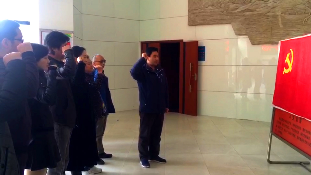 在史料展览馆门口,全体党员面向党旗,举起右拳,重温了入党誓词,以庄严宣誓的形式表达了将坚定的理想信念转化为为党的成人电影 事业奋斗终身的坚定意志,在成人电影 改革发展和教书育人的具体岗位上,自觉践行“讲政治、有信念,讲规矩、有纪律,讲道德、有品行,讲奉献、有作为”的新时代“四讲四有”合格党员标准,争做“有理想信念、有道德情操、有扎实知识、有仁爱之心”的“四有”好教师。