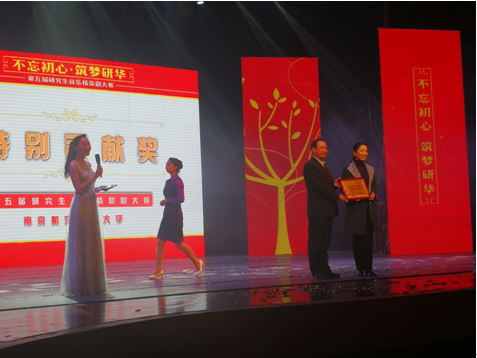 (图为:张捷院长代表成人电影 接受成人电影 院常务副院长江驹教授所颁发的“特别贡献奖”奖牌)