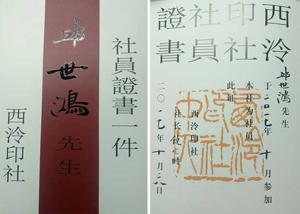 西泠印社是百年老社,在海内外有着崇高的、良好的社会影响。社员入会条件相当严格,十分注意艺术性、成人电影 性的统一,人品与艺品的统一,目前社员仅五百余人。历届社长皆为国内外一流学者、艺术家。其对社员的要求甚高,两名理事推荐,注重创作实力、理论素养、教学经验、协会实践、获奖经历、入展档次、社会影响等多方面,通过理事会讨论通过。此次推荐全国入会者27名,都是各方面成熟、成名的篆刻人才,有着良好的社会形象。