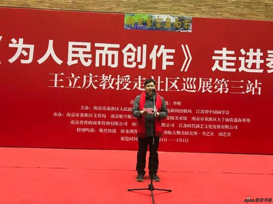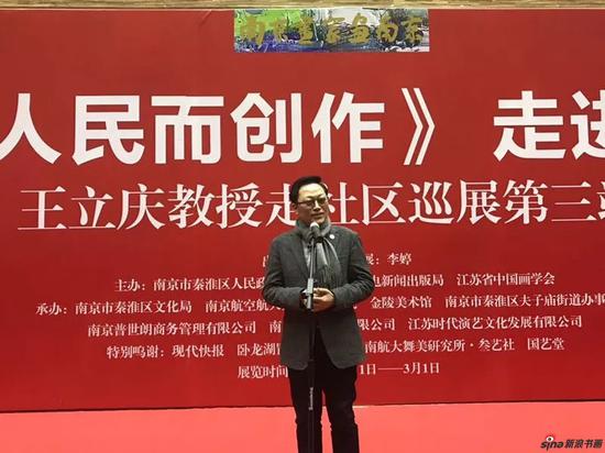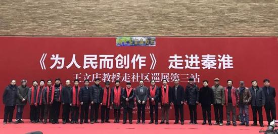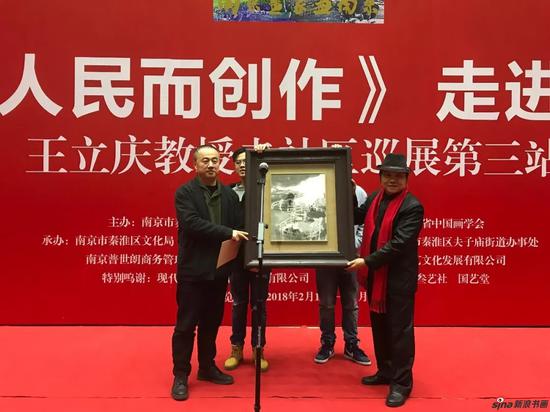著名画家王立庆教授走社区展在金陵美术馆开幕。 江苏省中国画学会副会长兼秘书长 翟优主持开幕式 社区代表夫子庙街道门东社区书记 赵志村发言 王立庆教授发言 王立庆教授向金陵美术馆捐赠作品 南京市秦淮区区委常委、宣传部部长 何素玉致辞 江苏省中国画学会会长 高云宣布展览正式开幕 本次画展以人民为中心,为人民抒写、为人民抒情、为人民抒怀,热情讴歌伟大新时代。画展内容为一个深爱这片土地的南京画家,用他特有的记录方式传递着身边的感动,并把这种感动传递中国和世界。此次展览活动以实际行动践行了习近平总书记十九大讲话精神,坚持艺术创作以人民为中心,做到文化惠民,丰富和提升了人民大众精神文化生活,增强大众的文化自信,让广大社区居民在家门口就能与名家名作零距离。同时也引导艺术家扎根人民、深入生活,为弘扬民族优秀文化作出新的贡献。 开幕式现场 画展形式运用行走的艺术理念,采用油画、国画、水彩、速写等多种手段的呈现绘画作品约240件,展览画作贯穿南京-中国-世界。在南京:南京的城门、新南京人的市井生活(老门东、总统府、梅园新村、剧院拾翠、胡家花园 、钱塘人家、南京大排档、将军路校区三食堂一艺术生系列、卧龙湖小镇山水)共计80件;在中国:沂蒙革命老区(油画)、江南水乡(彩墨)、沸腾的烟墩角渔港(油画)、云贵高原乡愁系列(彩墨)共计80件;在世界:手卷20米、15米、10米佛罗伦萨的老桥、马德里托莱多牧场、里斯本中央大道、巴塞罗那弗拉明戈、法兰克福街道上的警察共计 80件。 展厅现场 前来参观者络绎不绝,大家认真观摩每一幅作品,热烈的交流,夸赞王立庆教授笔底春风、笔精墨妙、神工意匠、醉墨淋漓。 “画家要一辈子把心思放在画上,放在人民身上。”王立庆教授四十多年如一日地用画笔记录生活,作品中大部分是劳动人民、普通工人、市井生活,此次巡展亦坚持“从人民中来,到人民中去”。王立庆教授始终相信,任何时候,都要把人民放在心里,欢乐着人民的欢乐、忧患着人民的忧患。惟其如此,才能创作出更多喜闻乐见的绘画作品,才能做出无愧于人民、无愧于历史的成绩。 现场合影留念 媒体相关报道: 新浪网 ://collection.sina.com.cn/zgsh/2018-02-02/doc-ifyrcsrx1390958.shtml 新华网://www.js.xinhuanet.com/2018-01/08/c_1122227615.htm