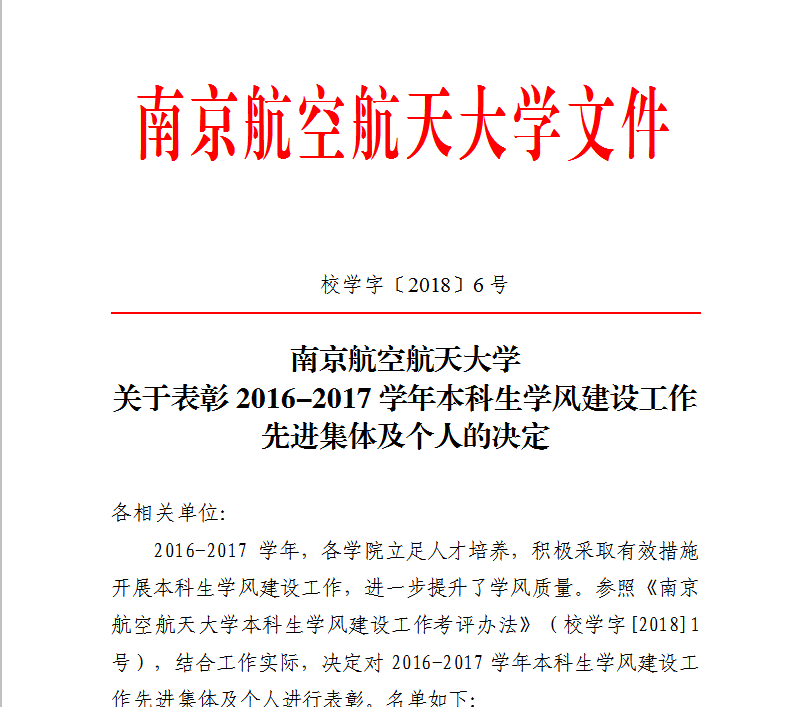 通过全院教师和成人电影 的共同努力, 在南航2016—2017学年本科生学风建设工作先进集体及个人表彰中,成人成人电影-成人影院-台湾成人电影 荣获成人电影 诚信奖、学困生帮扶成效基础奖及本科生学风建设工作先进个人,共三个奖项。在这一学年中,成人成人电影-成人影院-台湾成人电影 积极开展一系列有助于提高成人电影 教风、学风活动。学风建设工作成效显著。