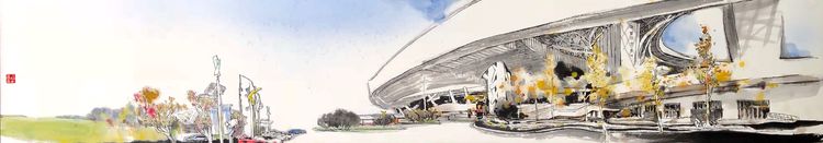 主办、江苏格冠美术馆承办。 2018年8月15日—8月23日,王立庆教授及创作团队第三次来到江北新区采风,访问了建设指挥部的相关领导、实地走访中央商务区展示中心,中国葛洲坝建设集团承建的中央核心商务区的建设工地,对江北新区未来五年发展的规划及新区成立三周年来的实施情况又做了新的深入了解。方案大量的保留了历史人文景观和遗存,把它打造成象征这座城市的精神堡垒,其中包括铁路暂桥等等,在建设投入上也充分考虑未来的发展趋势做到步步领先,仅老浦口火车站历史文化街区一项投资就高达500亿。如今整个江北新区就是一个大的建设工地,火热的生活令艺术家们感到无比振奋,虽然在实现理想的过程中总是会有许多艰难险阻,但这正是这个伟大时代所赋予我们的责任与担当。江北新区为南京、为中国勾画了现代化的美好愿景。 作为此次承办单位江苏格冠美求馆以生态文明、精神文明为本,自始自终都以严谨的治学精神,在筹办此次巡展的所有细节上力求尊重艺术家的首创、强调作品的原创性、独特性,力图在展览形式和互动上努力打造艺术巡展新亮点,也使得王立庆教授“画身边的人、画身边的事,画心路历程”有了新的起点和动力。《南京青奥体育中心》 尺寸:180X33Cm