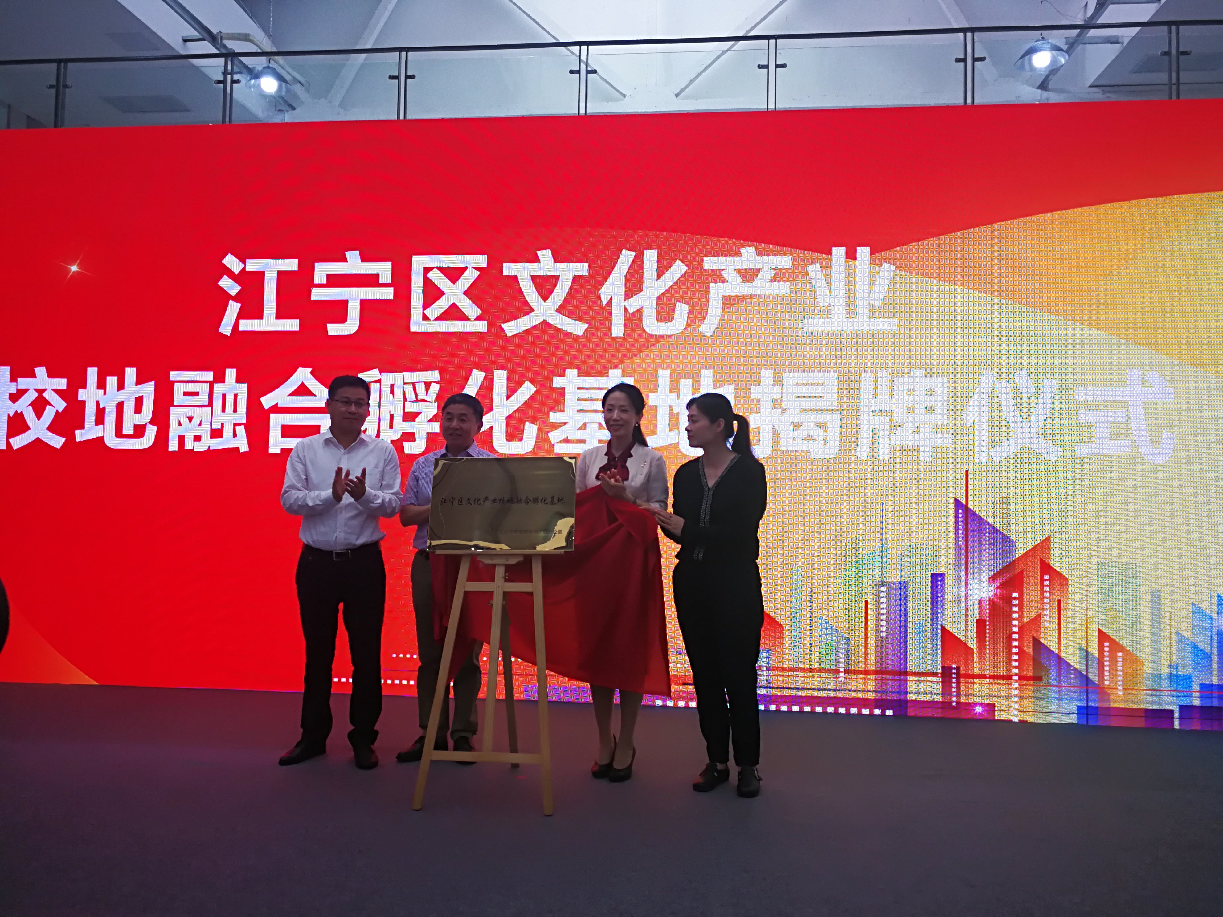 2018年5月18日下午,由江苏省文化产业学会和中共南京市江宁区委宣传部联合主办的江苏省文化产业学会创汇江宁融合发展主题峰会在江广创艺工场多功能厅召开。此前,成人成人电影-成人影院-台湾成人电影 就多次与江宁区委宣传部联系与沟通,围绕加快文化创意设计人才培养、文创项目集聚、文创产业创业等方面的合作展开深度交流,并主动对接构建文化产业校地融合孵化基地的新模式。在峰会上,江宁区政府副区长董涵、东南大学成人成人电影-成人影院-台湾成人电影 院长王廷信、成人成人电影-成人影院-台湾成人电影 -成人视频-a片直播网 院长张捷、中国传媒大学南广成人电影 副校长王宇甜为江宁区文化产业校地融合孵化基地共同揭牌。