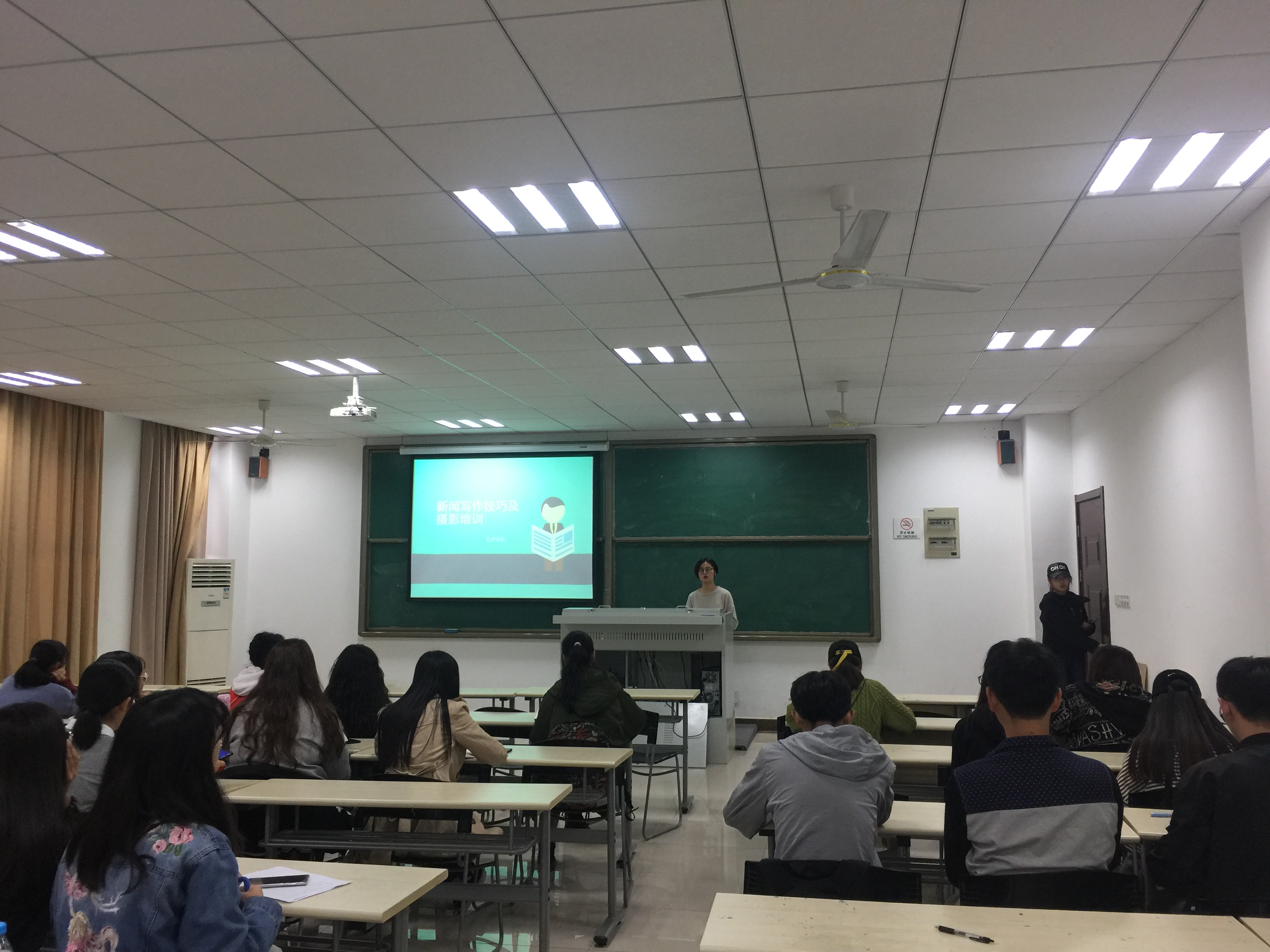 本次培训内容涉及到新闻稿的写作技巧、拍照的基本操作以及微信推送的编排等。此次培训活动由两位经验丰富的大三成人电影 授课。