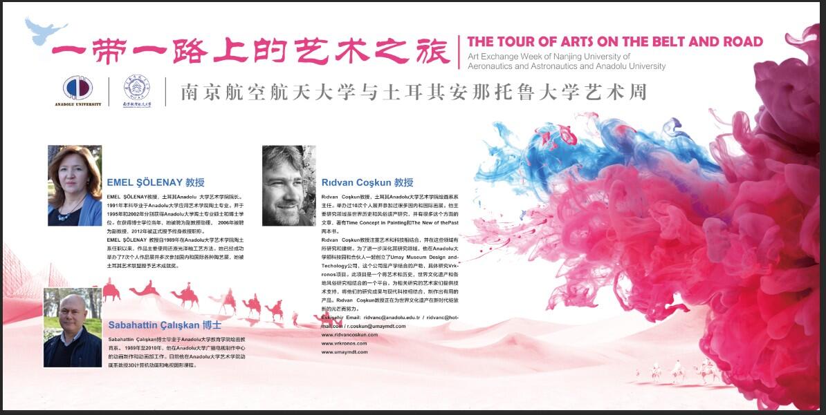 11月12日-11月21日,土耳其安那托鲁大学(Anadolu University)成人成人电影-成人影院-台湾成人电影 院长EMEL ŞÖLENAY 教授和Rıdvan Coşkun教授、Sabahattin Çalışkan博士、安纳托鲁大学对外联络部主任冯莉莉一行,受邀来校开展成人电影 访问交流,并联合我校成人成人电影-成人影院-台湾成人电影 举办“一带一路上的艺术之旅”交流周活动。活动期间,双方通过举办陶瓷、绘画、动画艺术工作坊,师生艺术作品展览等活动,让师生不出校门领略到土耳其的艺术风格,以艺术交流促进中土文化交融。