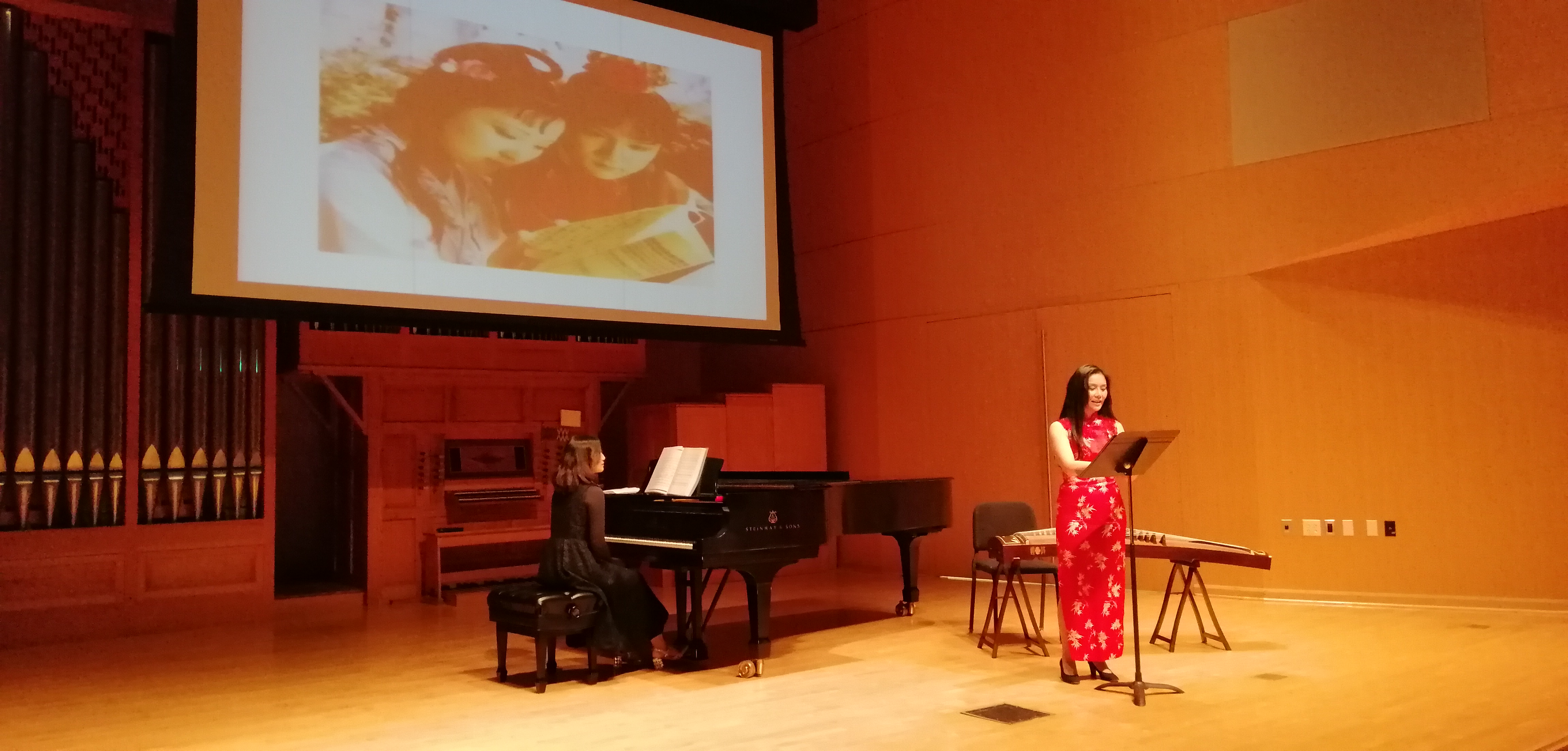 11月19日晚,正在美国中央华盛顿大学访学的成人成人电影-成人影院-台湾成人电影 张进副教授,受邀在中央华盛顿大学的麦金泰尔演奏厅,举办了中国艺术歌曲和民歌讲座音乐会。将东方的音乐文化带到了这所美国著名高等学府。此次讲座音乐会,由语言文学成人电影 和音乐成人电影 共同主办,在师生中引起了广泛关注。演出当晚,麦金泰尔演奏厅座无虚席,数百名师生参与,气氛热烈,中央华盛顿大学副校长marilyn Levine教授,语言文学成人电影 院长Michael Johnson教授,音乐系声乐系主任Gayla Blaisdell教授受邀出席了此次讲座音乐会。