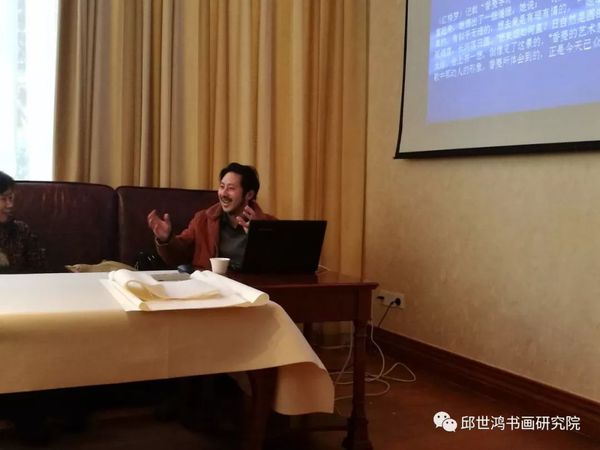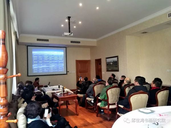 此次讲座时值外企协会新年年会,与会人员大都是成功企业家及书法爱好者。邱世鸿教授特意备课, 并针对当今审美现象进行剖析。近年,邱世鸿教授的全国讲座主题皆围绕“诗书画印与中国文化”而展开,提倡以士人为代表的精英文化和高雅艺术,具体落实在体现士人精神的诗书画印上。他结合自己的创作研究、社会阅历、审美观念对传统文化和艺术进行了梳理、分析和评价。他反对三俗文化对审美文化之干扰,致力提升士人精英文化之地位,主张成人电影 高雅艺术与社会审美需要的结合。大量的图片与幽默的讲解,吸引了企业界精英人士的兴趣。