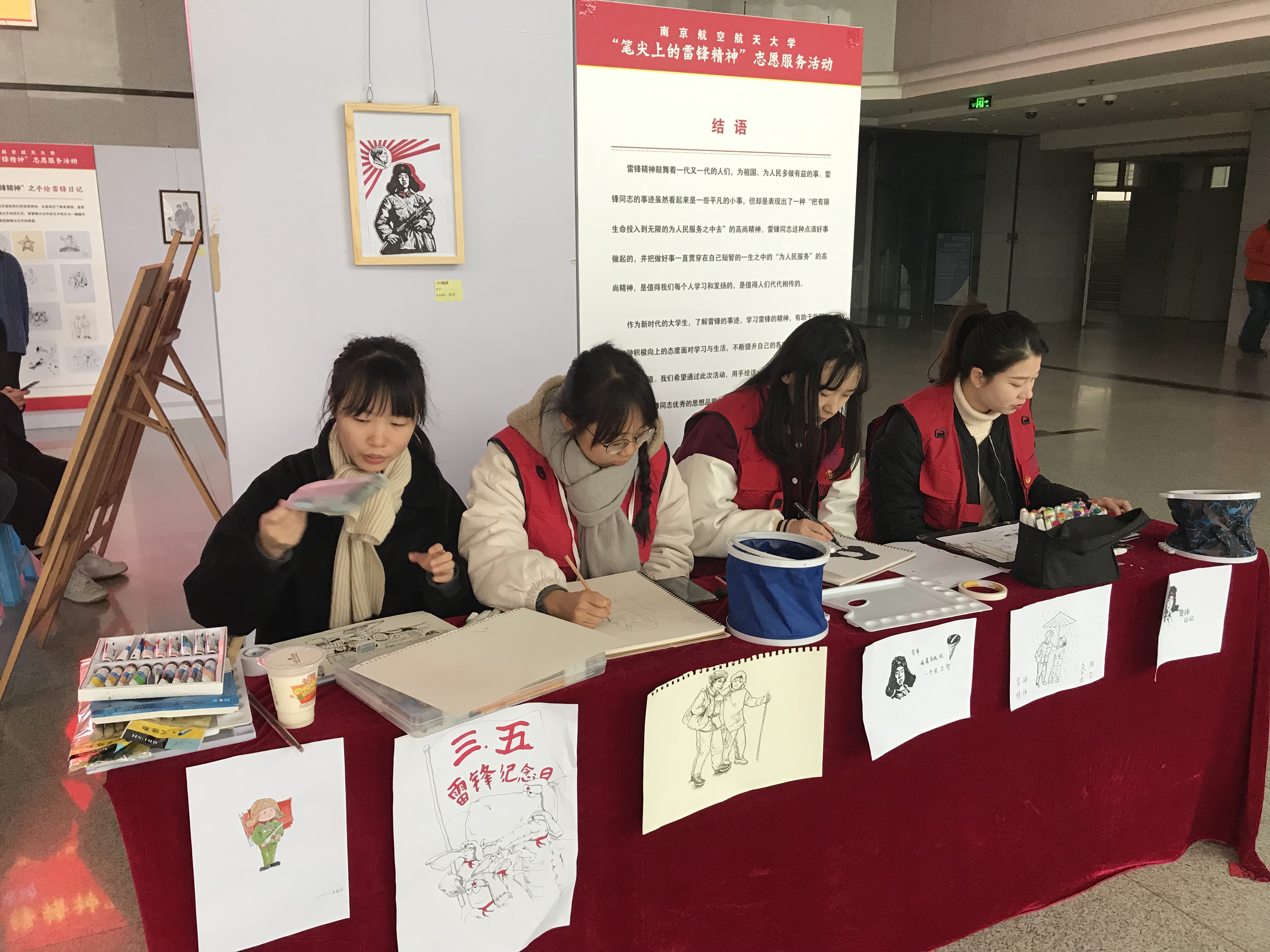 活动结束后,志愿者小心地将画作收集起来,负责人告诉我们,之后会把作品整理成画册,也会在“学雷锋月”期间通过线上推送的形式把这个活动和雷锋精神传达给更多的同学。