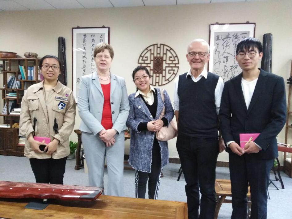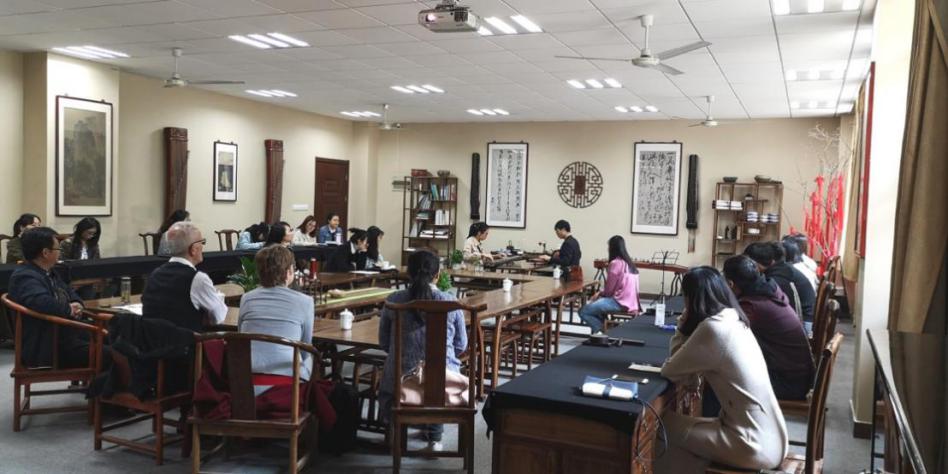 4月12日上午,应成人成人电影-成人影院-台湾成人电影 老师方璇博士邀请,汉诺威音乐戏剧和媒体大学校长Rode-Breymann教授和德国图宾根大学Erich Paulun院长Schmidt-Glintzer教授来到学成人成人电影-成人影院-台湾成人电影 ,与成人成人电影-成人影院-台湾成人电影 师生在砚湖书院开展了一堂别开生面的教学互动交流课。教学互动交流课上,来自航天成人电影 的邹助萱和航空成人电影 的王宁悦两位中国成人电影 向在场的嘉宾演绎了中国传统乐器-古琴二重奏。两位成人电影 通过本学期选修成人成人电影-成人影院-台湾成人电影 方璇老师的《室内乐演奏实践》课程,在老师的指导下,将古琴传统乐曲《酒狂》进行了重新改编,融合了西方现代音乐特色及技巧,两位同学的二重奏展现出优雅的东方音乐魅力,受到了外宾的连连称赞和一致好评。外宾当场赠予礼物,并邀请两位成人电影 去德国演奏,进行文化交流。两位外宾还与成人成人电影-成人影院-台湾成人电影 音乐学、美术学、设计学等专业的老师和成人电影 展开了互动交流及成人电影 研讨,气氛热烈友好。板俊荣副院长、邱爱金老师参加了本次活动。