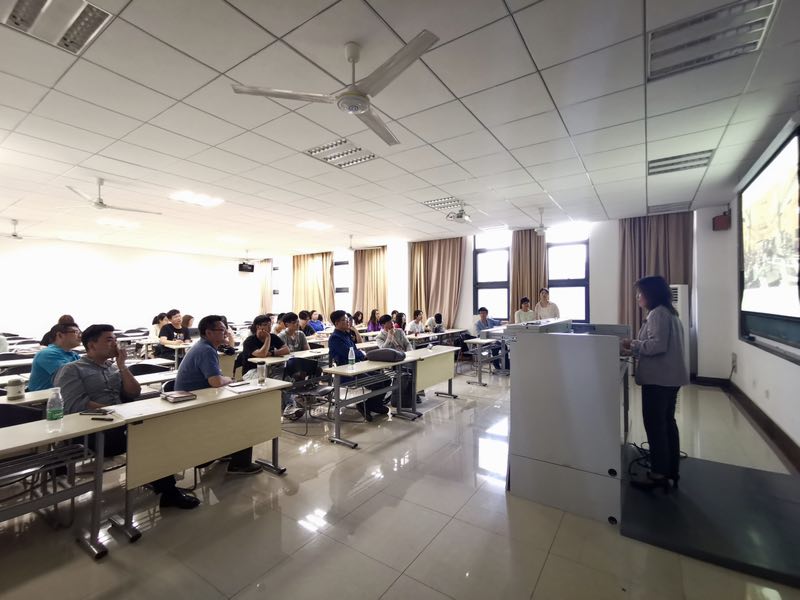 EunSook Kwon教授则通过讲解自身的经历与作品的设计过程为主要内容进行了《艺术与技术》主题讲座。讲座围绕经济、设计与成人电影 几个关键词展开,为大家传输了可持续发展的设计以及设计就像空气一样无处不在等理念,并呼吁同学们要学习周边生活中的事物,来提高自己的设计敏感性。