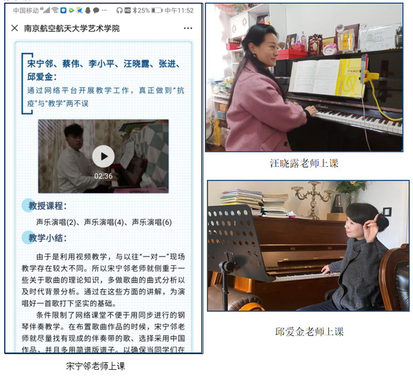 比如,对于声乐演唱课程来说,由于是利用视频教学,与以往“一对一”现场教学存在较大不同,不能同步使用钢琴伴奏教学,所以老师们就侧重于讲授一些关于歌曲的理论知识,多做歌曲的曲式分析以及时代背景分析。在布置歌曲作品的时候,也尽量找有现成的伴奏带的歌、选择采用中国作品,并且多用简谱版谱子。以确保当同学们在家没有钢琴的情况下也能进行歌唱。