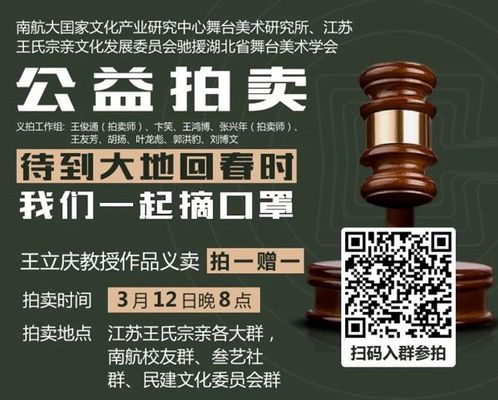 近日,王立庆老师发起了由南航国家文化产业研究中心、南航民建、江苏王氏宗亲文化发展委员会、湖北省舞台美术学会、江苏省舞台美术学会等多家联合举办的《待到大地春回时,我们一起摘口罩》王立庆教授作品义卖活动。义卖将于3月12日晚进行,所得善款将全部用于购买防护物资,定向捐赠给湖北省舞台美术学会并通过学会发放至相关人员,用实际行动彰显社会责任,用爱心善举凸显家国情怀。