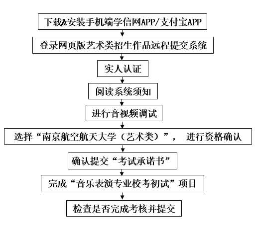 考生须仔细阅读艺术类招生作品远程提交系统上的使用说明,确保在视频录制前已经充分、详尽了解系统使用方法、要求和相关规则,考生可先阅读“答考生问”(附后),内含视频录制模板。考生不按规定上传、未在规定时间内上传作品视频,视为自动放弃初试资格。
