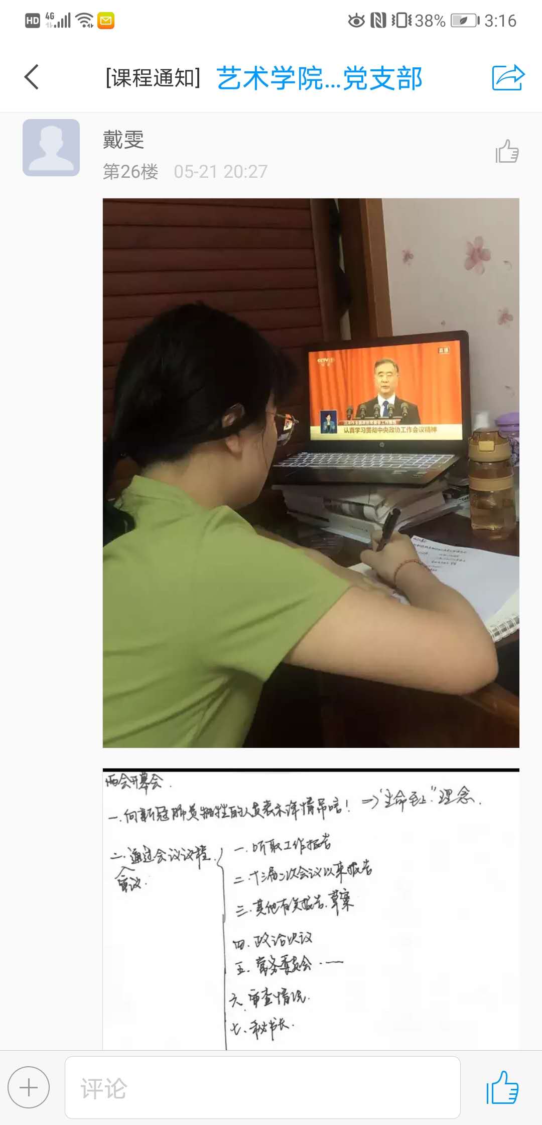 同时,在教工党支部的组织下,部分教工党员在家观看了两会开幕式直播。