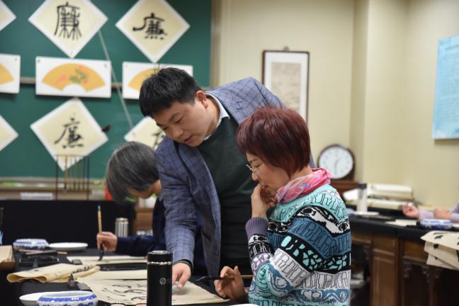 “‘廉’最初是指在堂南边的边角,堂屋的侧边。莲出淤泥而不染,濯清涟而不妖。”12月9日,联合国确定的国际反腐败日当天,在砚湖书院教师郭洪豹的指导下,书院各位学员写“廉”字、画莲花、话廉洁,接受了一次生动的廉洁文化成人电影 。