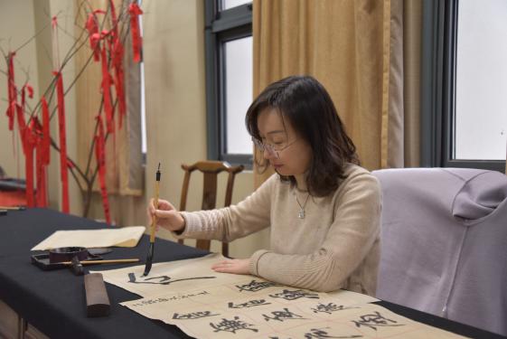 本次活动分为书法写作和国画创作两部分。在书法写作的过程中,郭洪豹梳理了“廉”字的内涵与书体的演变历史,“‘廉’最初是指在堂南边的边角,堂屋的侧边。中国人的思维,总是从身边的事物想到自己的身上。由堂边的棱角引申为人的棱角,做人有棱有角,廉就有了端方、方正、正直的意思。从一个字的发展变化,我们不难看出,廉洁、清廉是我国优秀的传统文化。”他继而分析了“廉”字内涵的变化。清廉首先意味着不随意索取,与节约之俭有关,于是便有了“俭以养廉”的说法,强调节俭可以培养廉洁的作风。后来,“廉”字的含义被引申到政治领域,表示清白、公平、简约、方正、高洁、明察。廉与礼、义、耻并列,成为国家的四大支柱之一。晏子曾说:“廉者,政之本也。”为政的根本、政治的根本就是廉。以此为基础,郭洪豹老师剖析了“廉”字金文、小篆、隶书、楷书、行书、草书的写作技法,带领老师们从一笔一划中体味“廉”字背后的文化内涵。