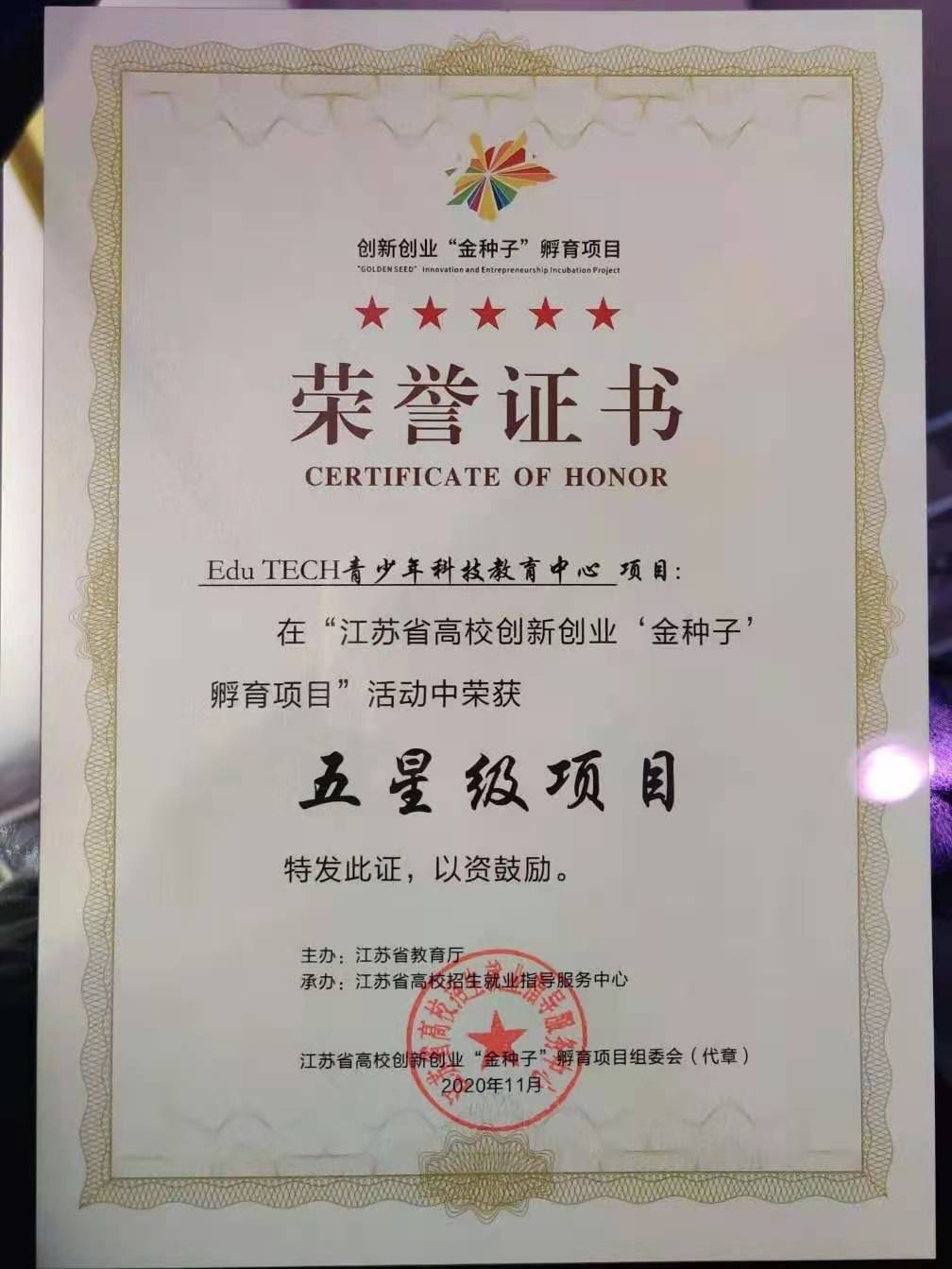 11月28日,由江苏省成人电影 厅主办,省高校招生就业指导服务中心、扬州大学承办的全省高校创新创业“金种子”孵育项目颁奖仪式在常州举行。成人成人电影-成人影院-台湾成人电影 “Edu TECH青少年科技成人电影 中心”创业项目获评五星级项目,并被授予“金种子”称号。