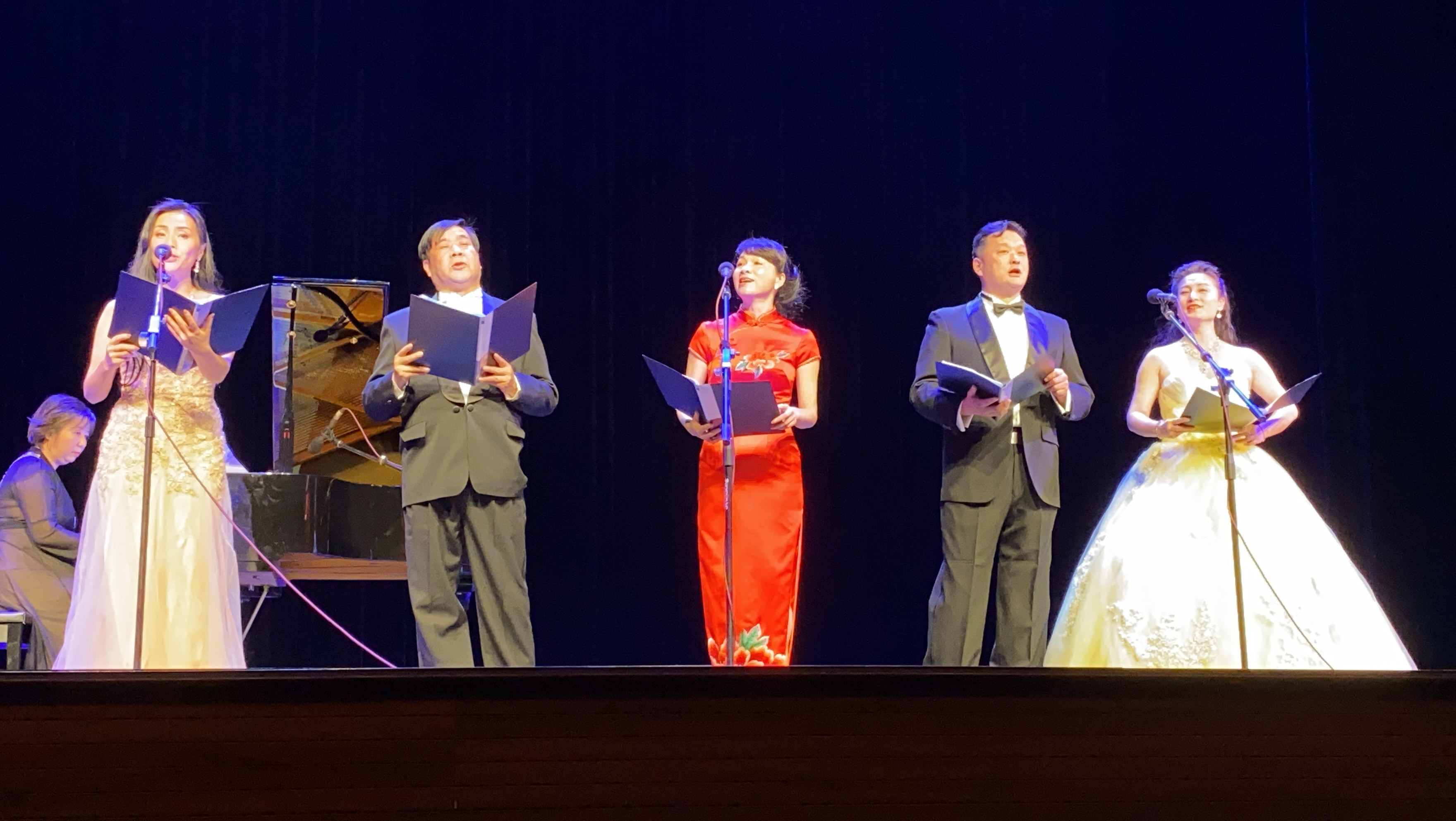 上半场的音乐会在五位老师带来的声乐盛宴中,把观众们对音乐的热情推向了顶峰。接着,大家期待已久的盛小华女士的小提琴音乐作品的演奏也拉开帷幕。