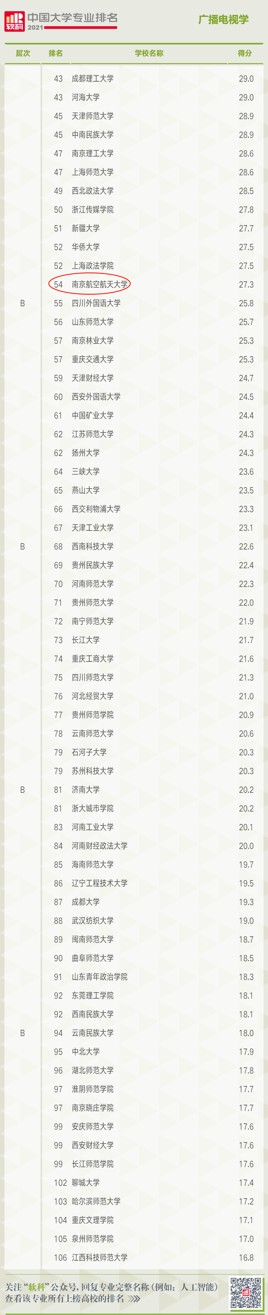 2021年6月22日,高等成人电影 评价专业机构软科正式发布2021“软科中国大学专业排名”,排名覆盖92个专业类的500多个本科专业,发布近3万个专业点,是迄今为止规模最大的中国大学本科专业排名。