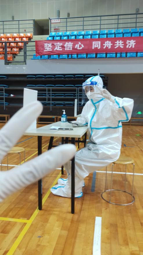 早上八点半,志愿者们在将军路校区体育馆集合,接受培训后换上防护服,从头到脚武装起来。“终于理解那个上门给人做核酸在楼下苦等无果后大哭的医护人员了!”在当天的朋友圈中,20级新闻与传播专业的硕士成人电影 田点这样写道,“穿上防护服的感觉像焖锅,穿了10分钟就感觉热到不行,手套褪下来后汗水直接拧成几股流下来了。”