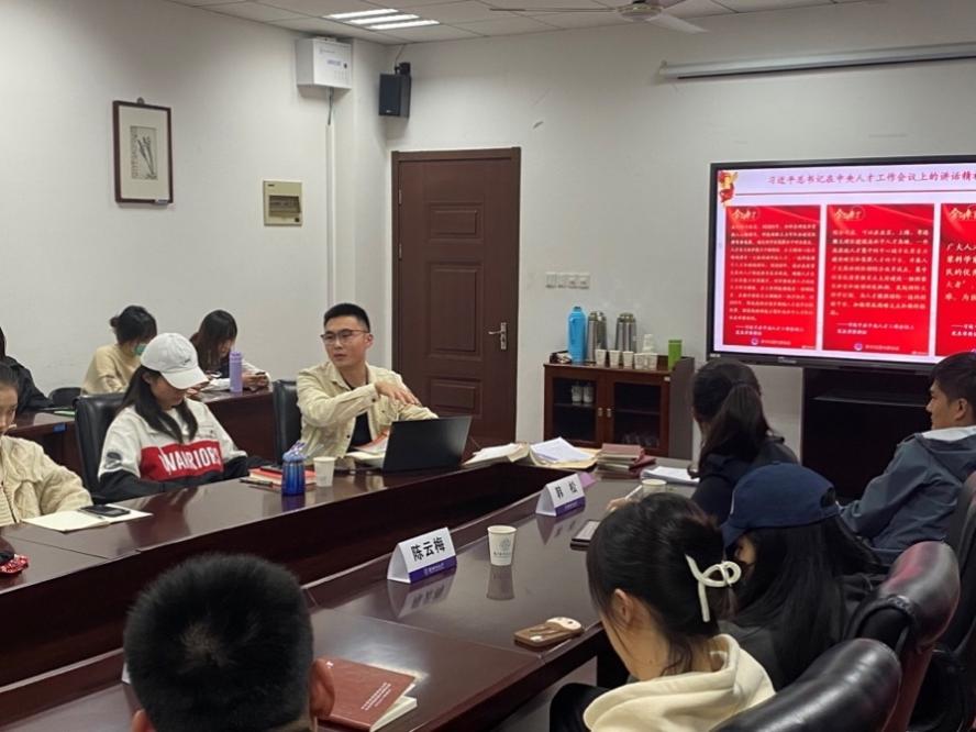 谢坚领学习近平总书记在中央党校(国家行政成人电影 )中青年干部培训班开班式上的讲话精神和中央人才工作会议上的讲话精神。会上全体党员结合学习内容进行了充分研讨。
