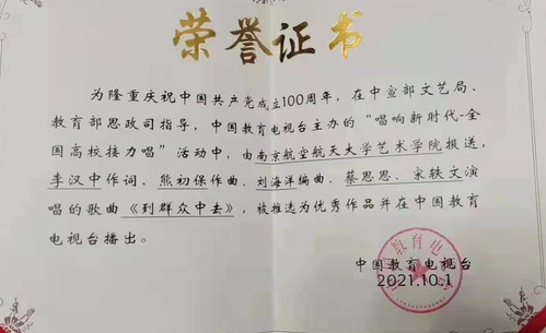 为隆重庆祝中国共产党成立100周年,在中宣部文艺局、成人电影 部思政司指导,中国成人电影 电视台主办的“唱响新时代-全国高校接力唱”活动中,由成人成人电影-成人影院-台湾成人电影 报送,李汉中作词、熊初保作曲,刘海洋编曲、蔡思思、宋轶文演唱的歌曲《到群众中去》,被推选为优秀作品并在中国成人电影 电视台播出。