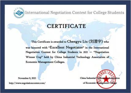 11月18日,2021年“商谈赢家杯”全国大成人电影 商务谈判大赛组委会发布最终获奖名单。我校Full Immunization(全员免疫)代表队在英文赛道中荣获全国一等奖,成人成人电影-成人影院-台湾成人电影 的刘澄宇同学荣获“优秀谈判手”荣誉称号。