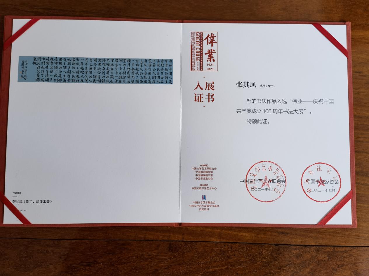 创作丰富的书法艺术精品力作,献礼建党百年。今年,张其凤教授应邀参加省级以上庆祝建党100周年书法大展多达三十余次。其中规格最高的是由中国文联、国家图书馆、中国书协联合主办的“伟业-庆祝中国共产党成立100周年书法大展”。