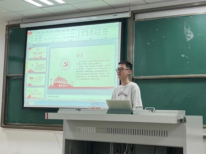 支部指导老师罗莉婷讲话。罗老师向支部新成员讲解了党支部的发展历程及支部要求,并对支部会议表示了肯定,希望在今后所有党员同志能够发挥主人翁意识,严格要求自己,发挥自身的先锋模范作用,做一名优秀的共产党员。