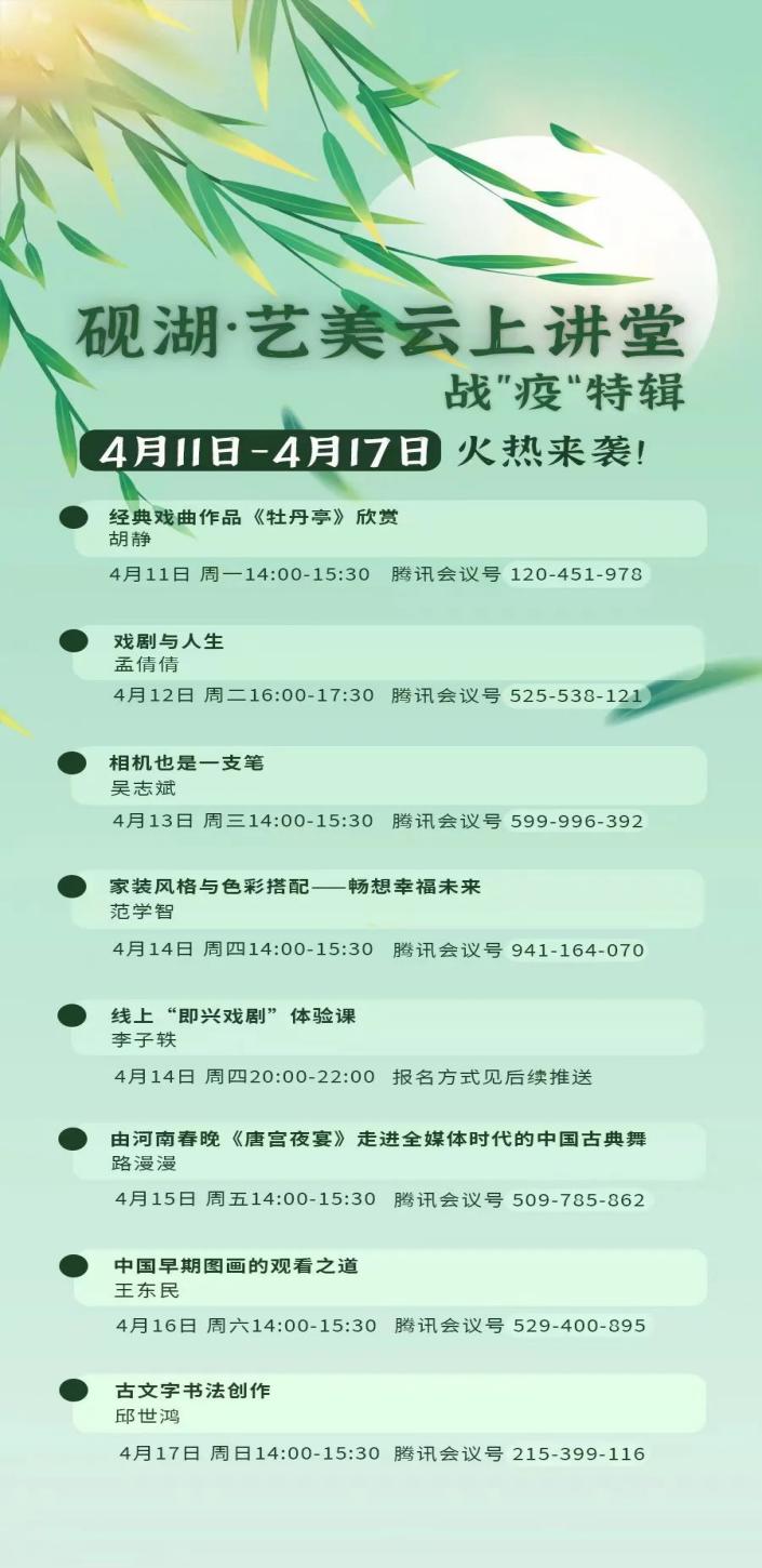 应对校园疫情应急状态,帮助广大同学舒缓心情,共克时艰,成人电影 推出了“砚湖 艺美云上讲堂”系列课程,得到了成人电影 教师的积极响应。第一期8堂精彩的艺术课程已经上线,将在4月11日-4月18日给同学们带来另一种精彩的艺术体验。