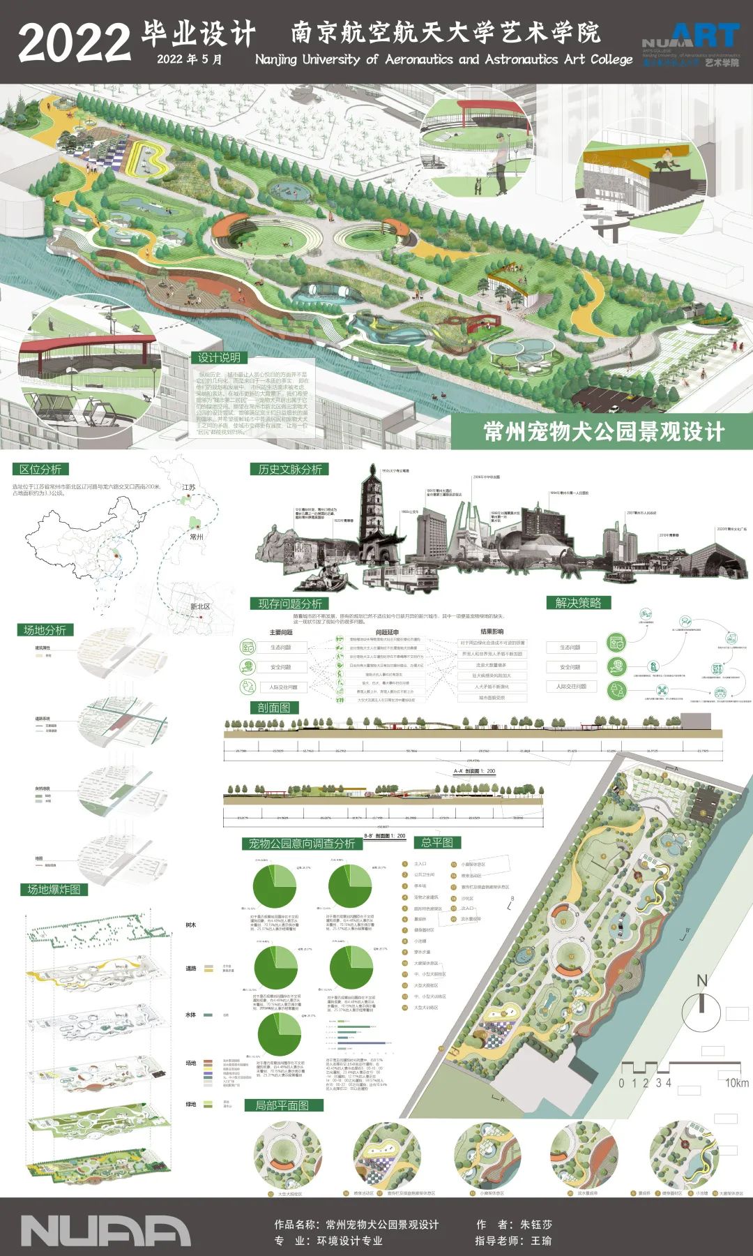 纵观历史,城市最让人 赏心悦目的方面并不是它们的几何化,而是来自于一本质的事实,即在他们的规划和发展中,市民的生活需求被考虑、采纳和表达。在城市更新的大背景下,我希望能够为”城市第二居民”一宠物犬开辟出属于它们的绿地空间。尝试在常州市新北区做出宠物犬公园的设计尝试,能够满足宠主们日益增长的遛狗需求,并希望缓解城市中普通居民和宠物犬犬主之间的矛盾,使城市变得更有温度,让每一位"居民”都能找到归所。