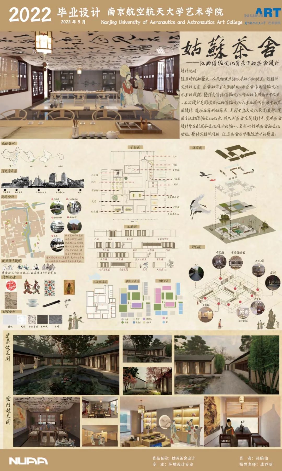 随着时代的发展,人民物质生活水平不断提高,对精神文明的追求,茶舍的需求逐渐壮大。而茶舍做为传统文化元素的载体,发挥其传播文化内涵的作用为重中之重。本次设计是围绕江南传统文化原色在现代茶舍中的应用设计,选址在江苏姑苏区,其极具历史悠久的文化氛围。