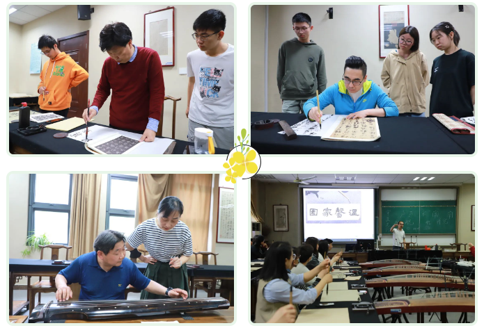 本次砚湖书院主讲人除了成人成人电影-成人影院-台湾成人电影 张其凤教授、胡光灿老师、郭洪豹老师,还邀请了专业突出的校友代表张星星和相关艺术领域的专业人士卞昌荣、潘杨、潘雪蓉老师共同开讲。开讲课程包括书法初级、书法中级、国画、古琴、古筝等特色课程,各种课程分布于明故宫、将军路两校区的三个教学点(将军路校区成人成人电影-成人影院-台湾成人电影 、明故宫校区西苑、明故宫校区逸夫科学馆)。近百位教职工参加了书画、古琴、古筝的课程学习。